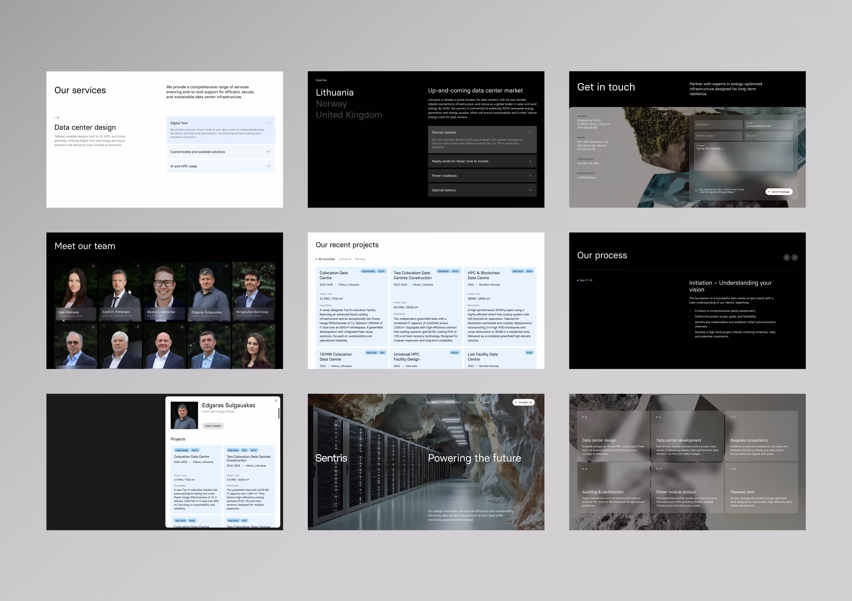 Sentris yra specializuota duomenų centrų projektavimo ir statybos įmonė, orientuota į tvarias, aukšto efektyvumo patalpas – ypač pritaikytas aukštos našumo skaičiavimams (HPC). Šio projekto tikslas buvo sukurti naują svetainę, kuri pilnai atspindi Sentris atnaujintą pozicionavimą ir vizualinę tapatybę - skaitmeninę patirtį, perteikiančią tiek techninį meistriškumą, tiek tvarumo inovacijas.